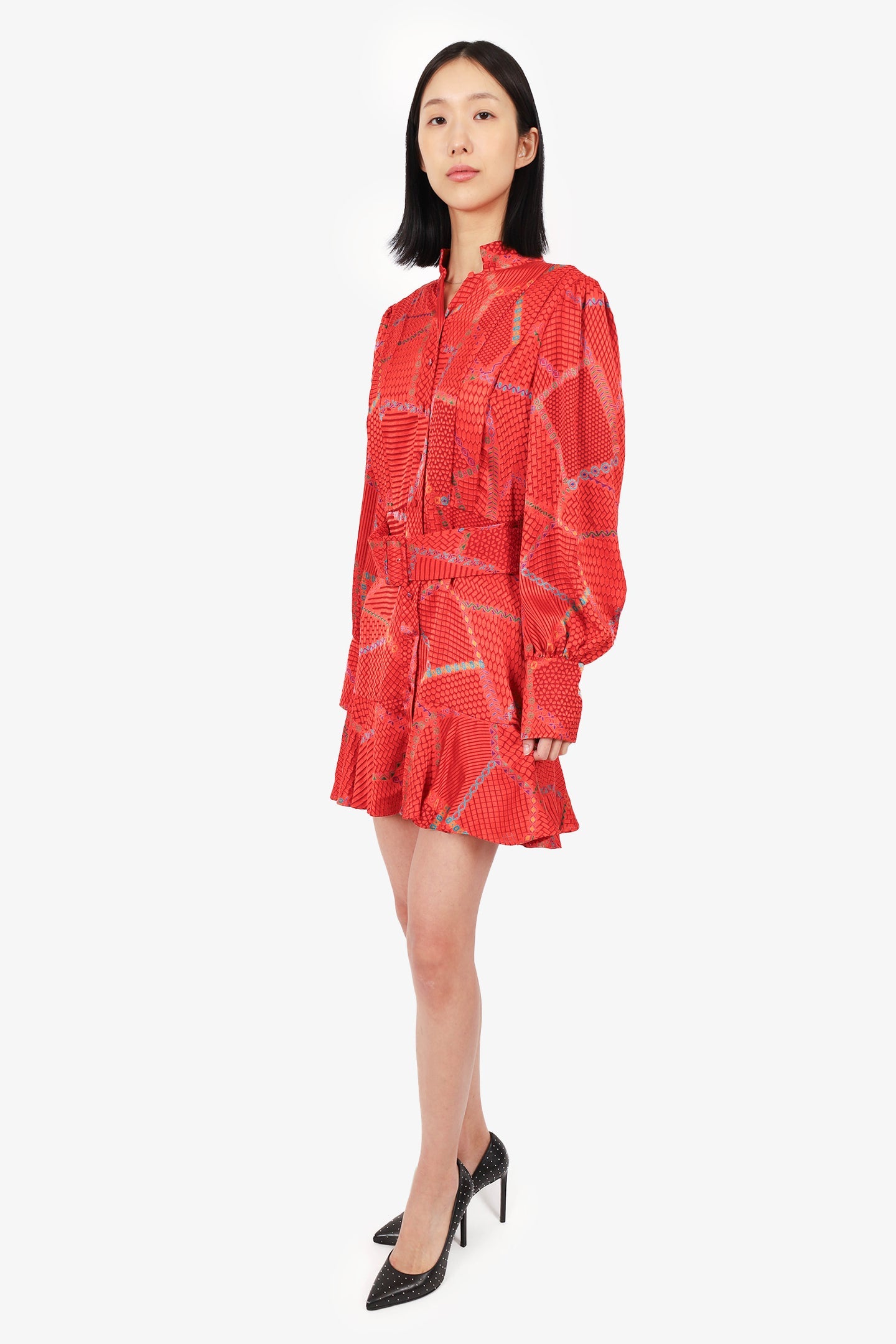 Alexis Orange Lishan Printed Belted Mini Dress