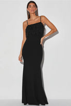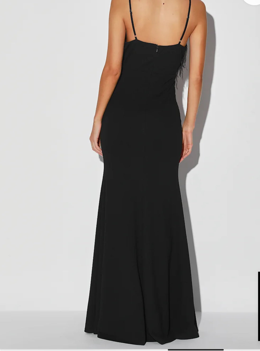 LuLus Glamorous as always black feather sleeveless maxi dress size small