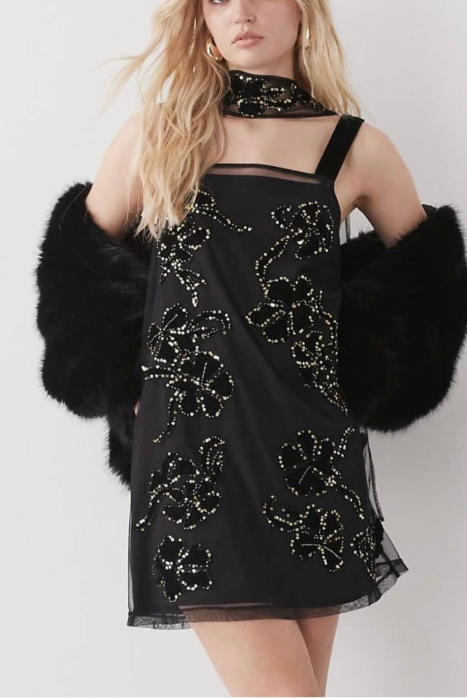 Black Reclaimed Vintage Black Embellished Cocktail Dress