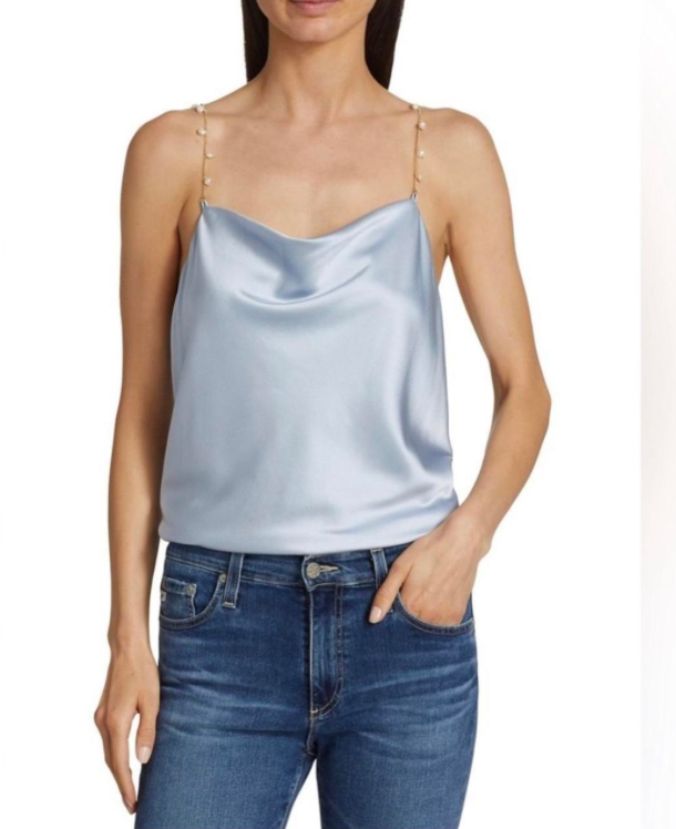 Blue Cami NYC Top with Pearls