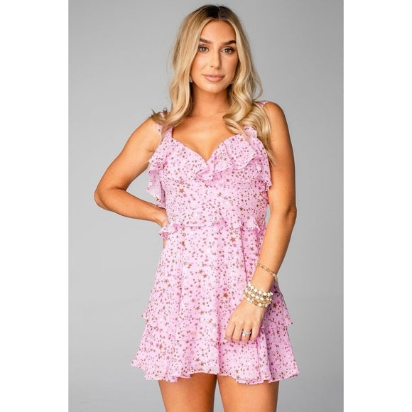 Buddy Love Zodiac Julia Ruffled Dress Pink with stars size XS