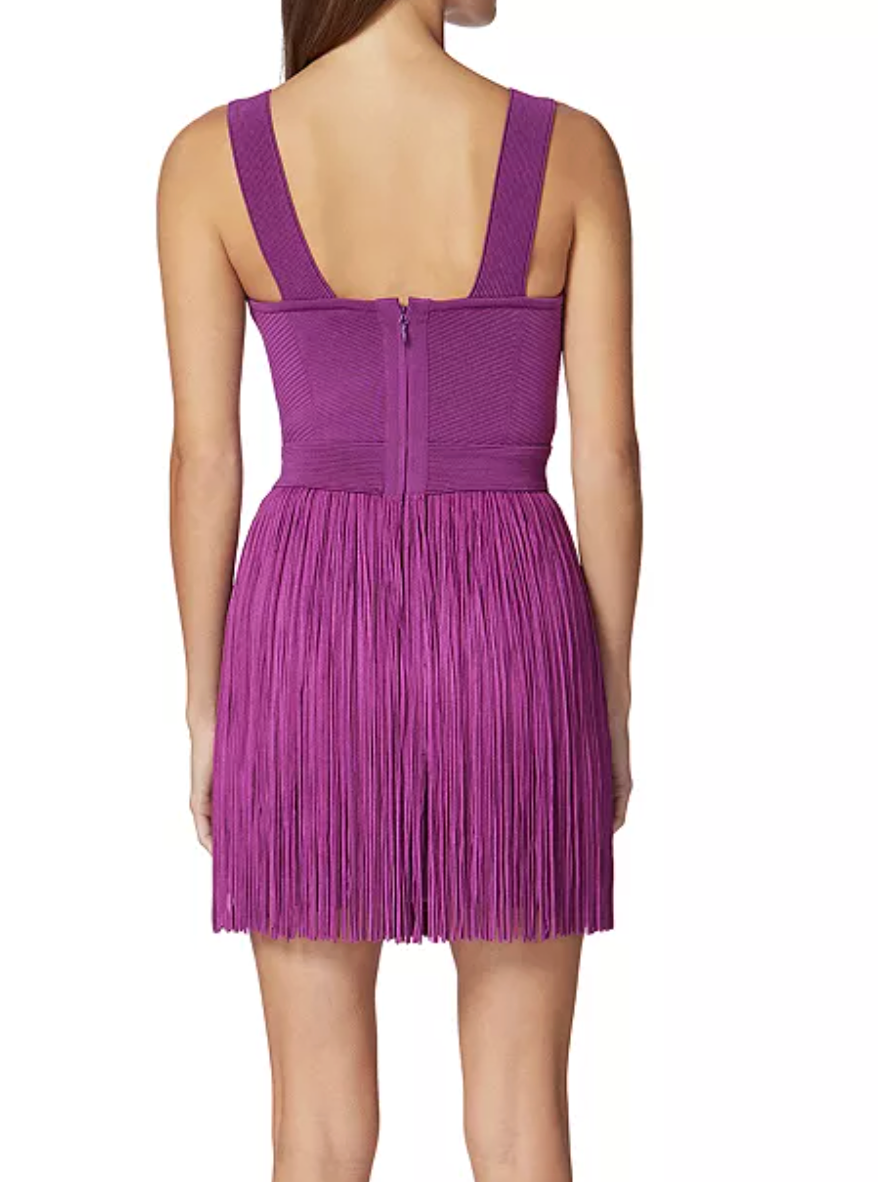 purple Herve Leger mini dress with fringe xxs