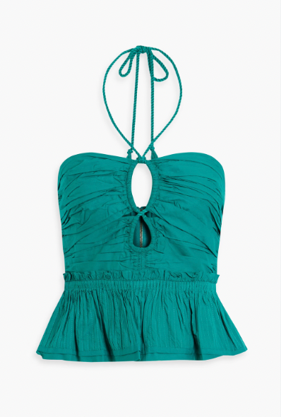 Ulla Johnson Adaleigh pintucked cotton halterneck peplum top