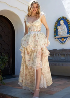 Vchapman Ruffle Gown With Rose Floral