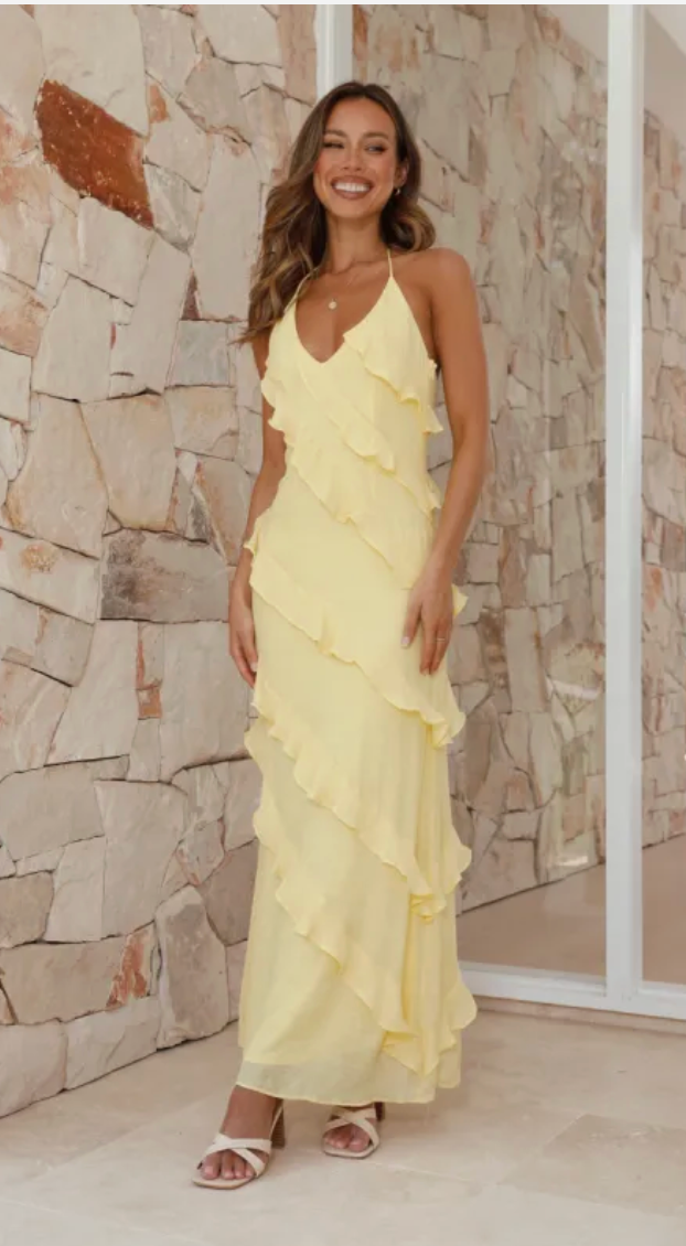 Yellow billy j sophia maxi dress size 6
