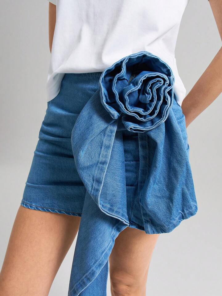Flower Denim Mini Skirt