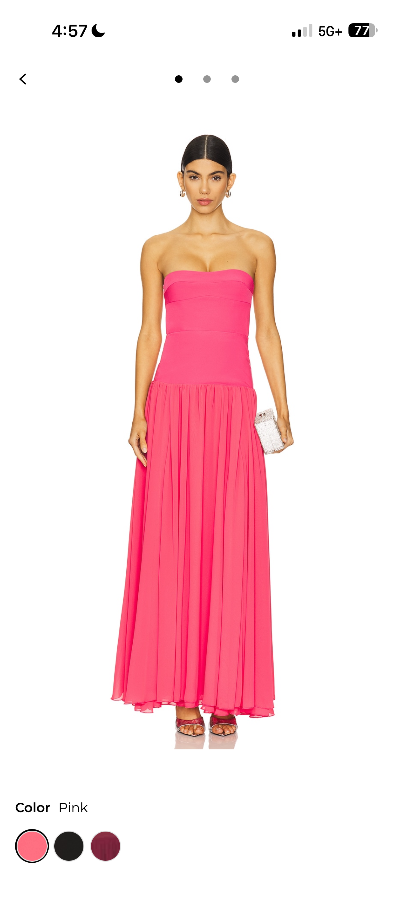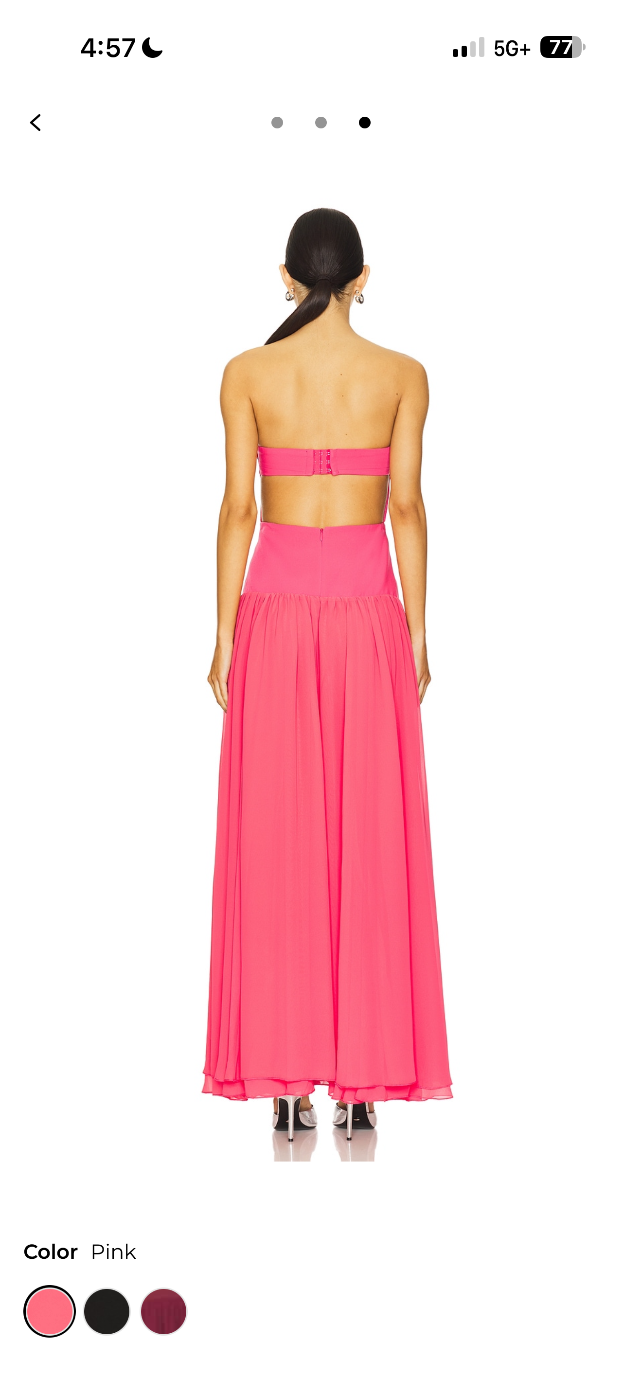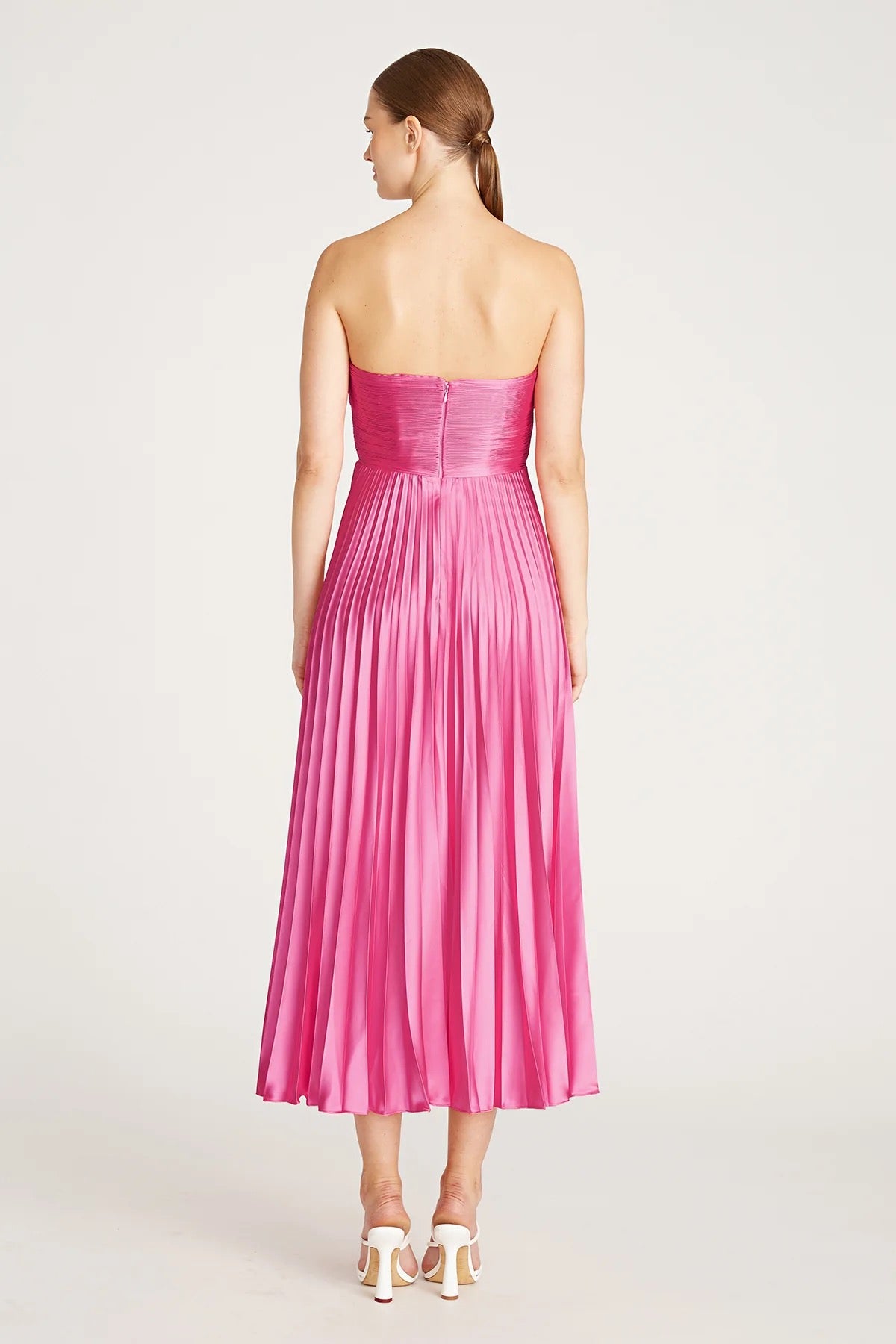 Pink Amur Strapless Pleated Midi Dress