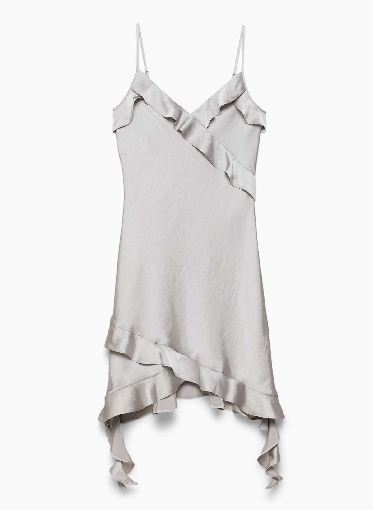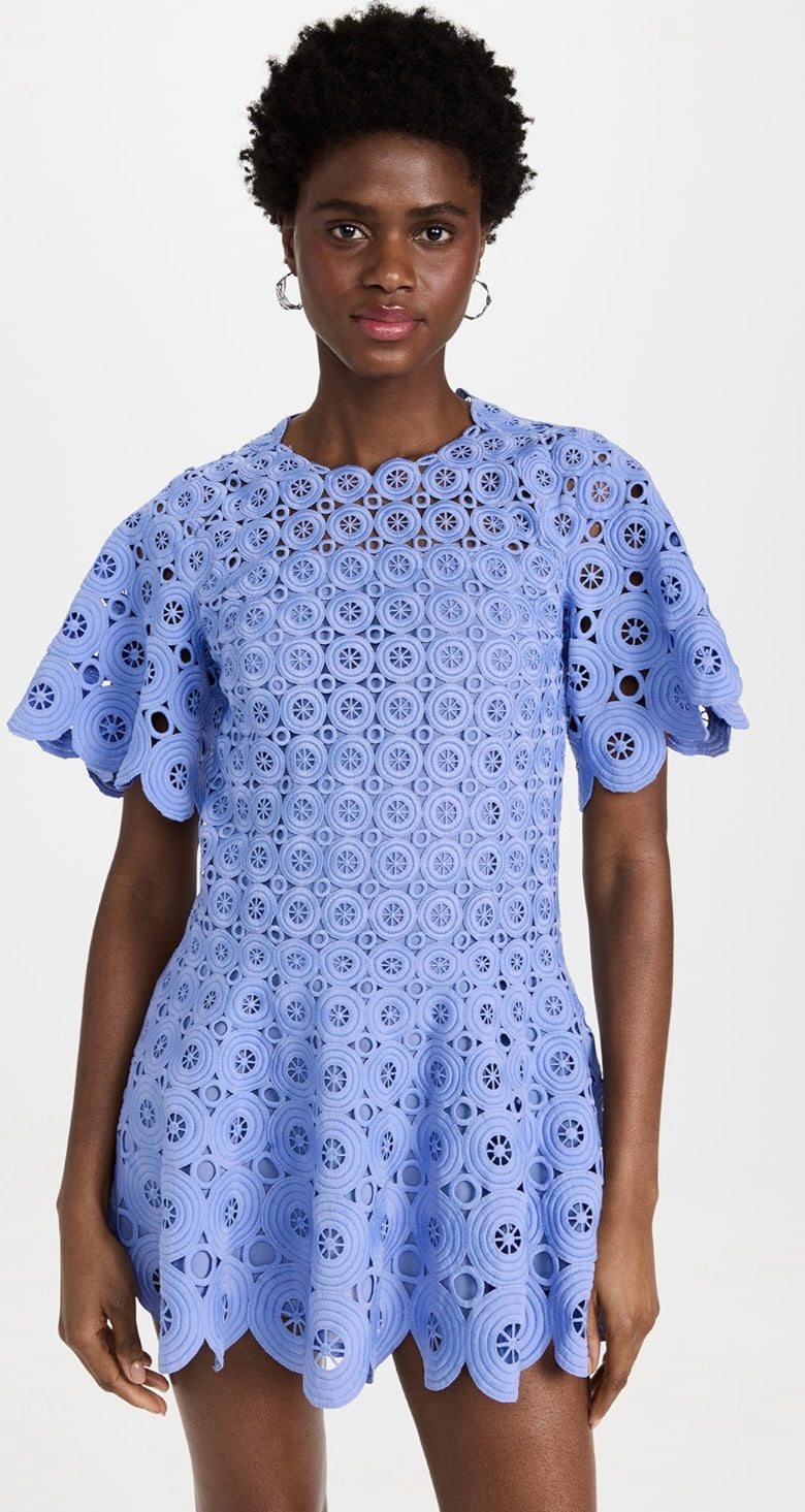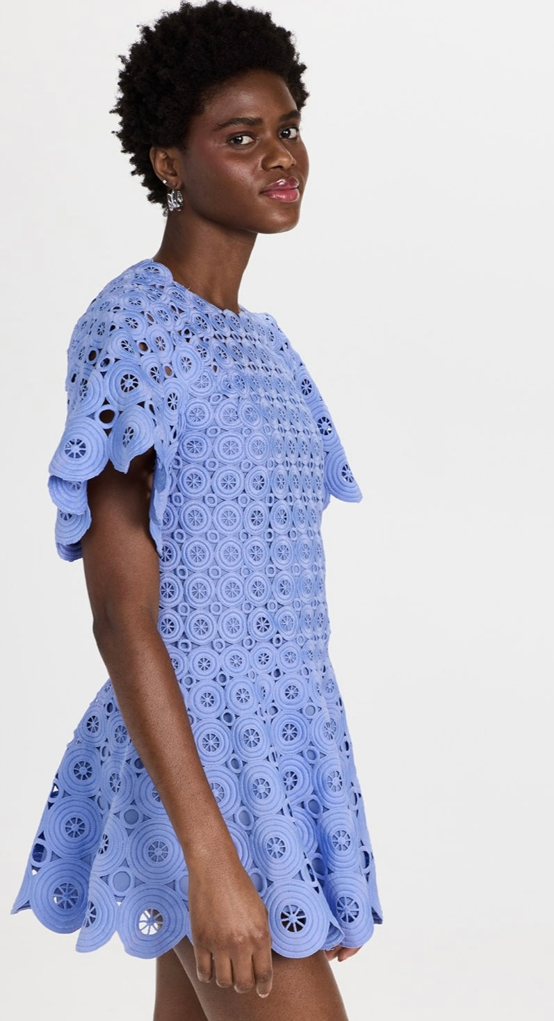 SIMKHAI Cleo Polin Balloon-Sleeve Pleated Mini Dress