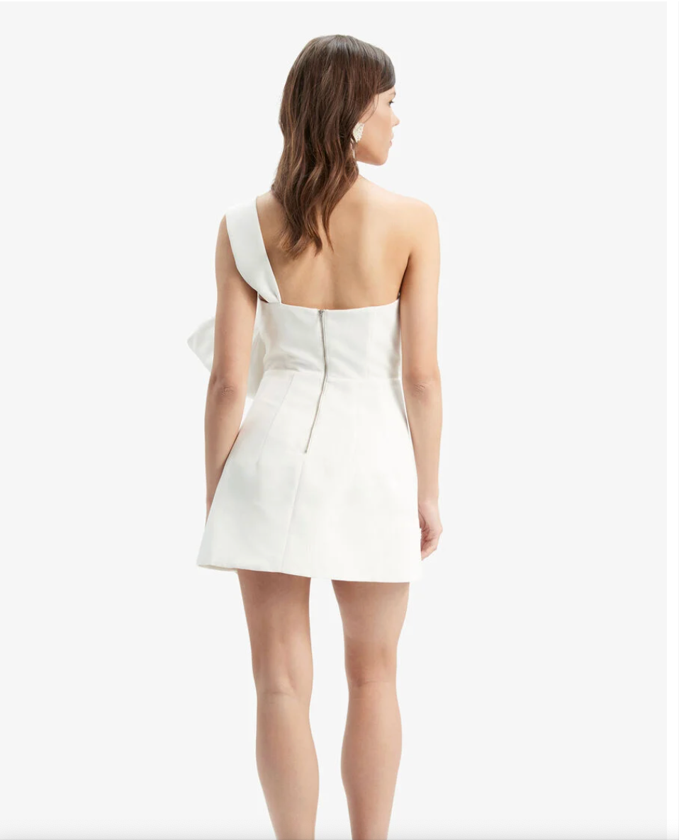 White Bardot Bow mini dress
