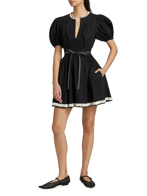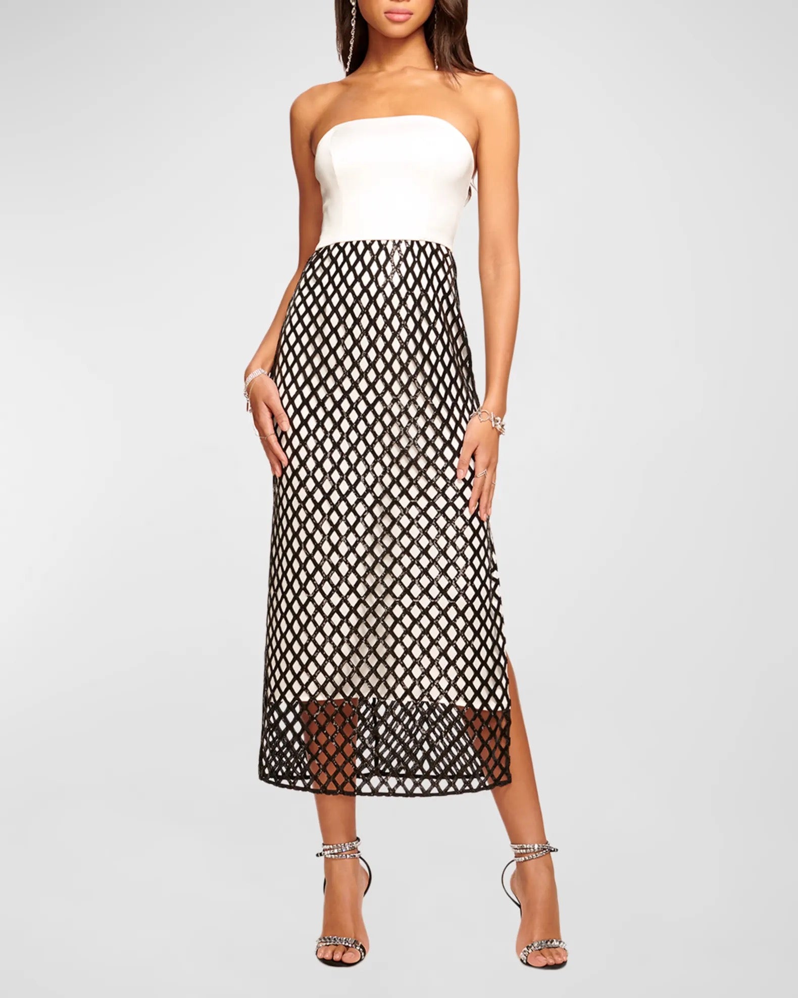 Black and White Ramy Brook Sequin Lattice Midi Dress