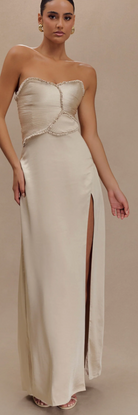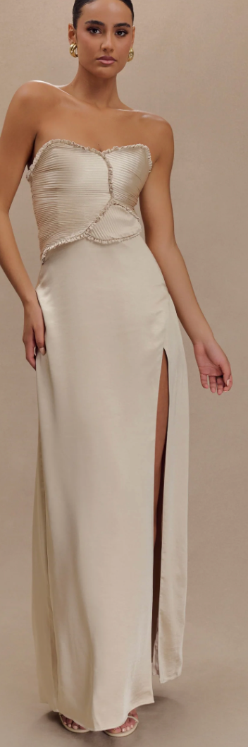 Larissa Satin Maxi Dress With Ruched Petals - Blush Gold Meshki size M