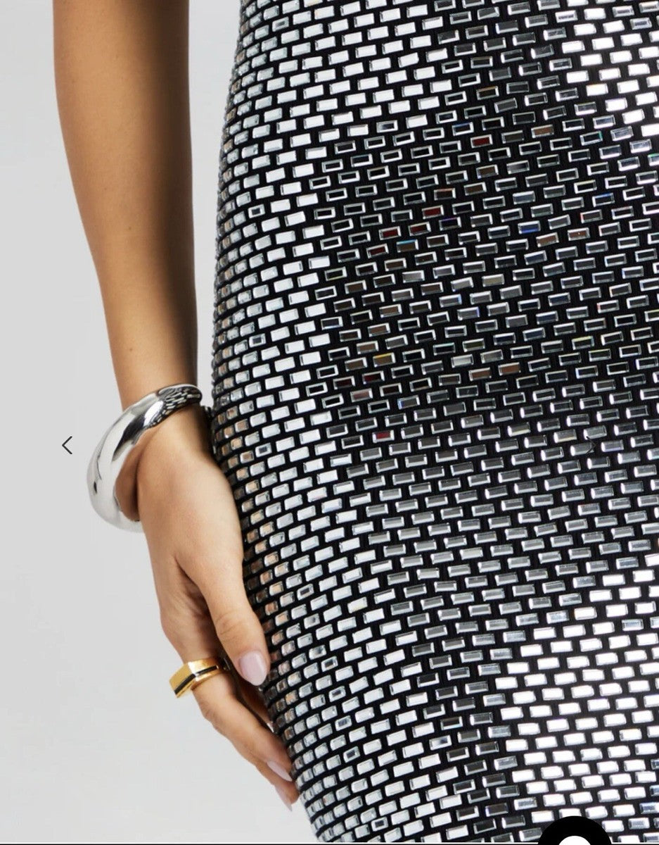 Bebe White and Black Sequin Mini Dress