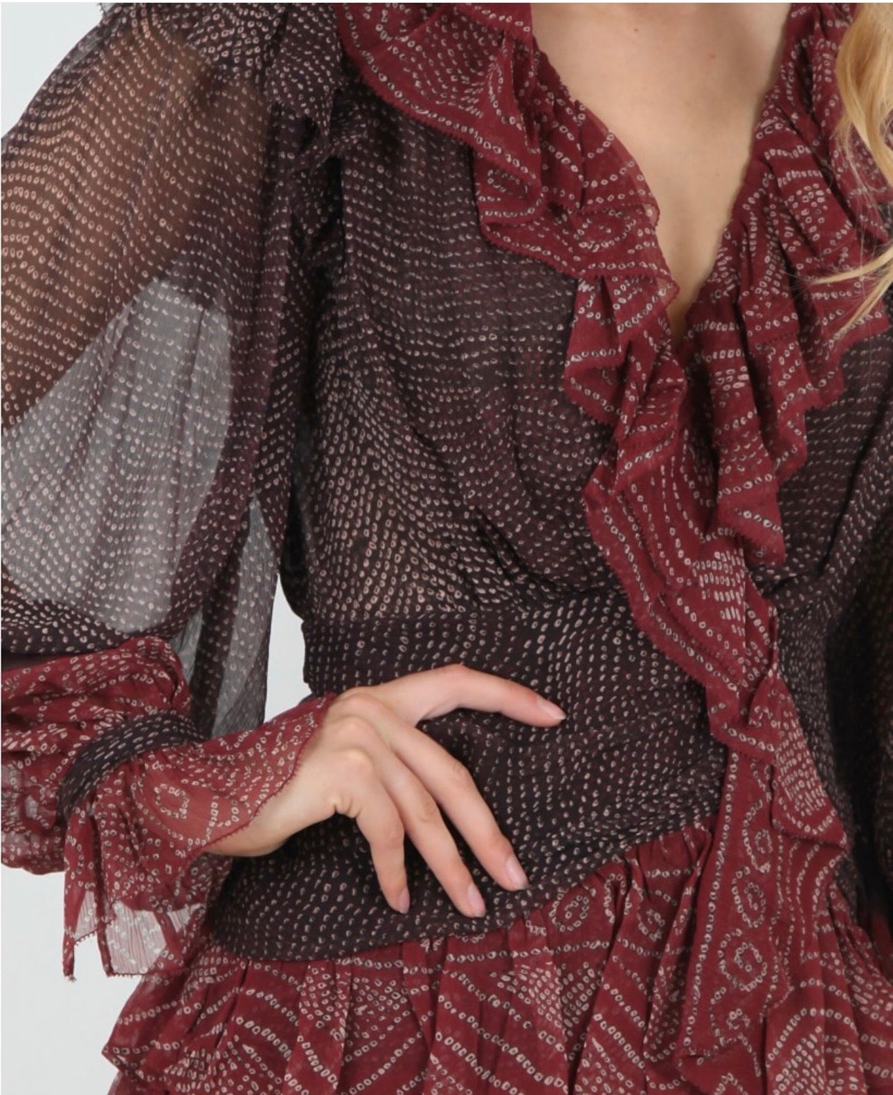 AFRM Brown Polka Dot Midi Dress