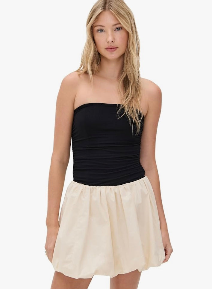 Black & Cream Bubble Hem Mini Dress