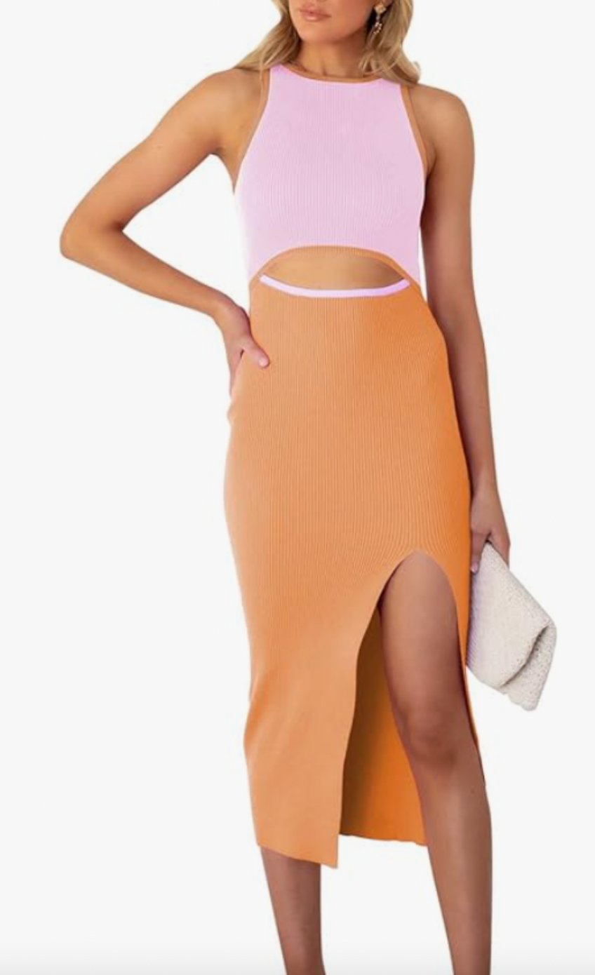 Ribbed Cutout Midi Dress