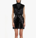 Amanda Uprichard Simran Sequin Satin Cocktail Minidress in Black