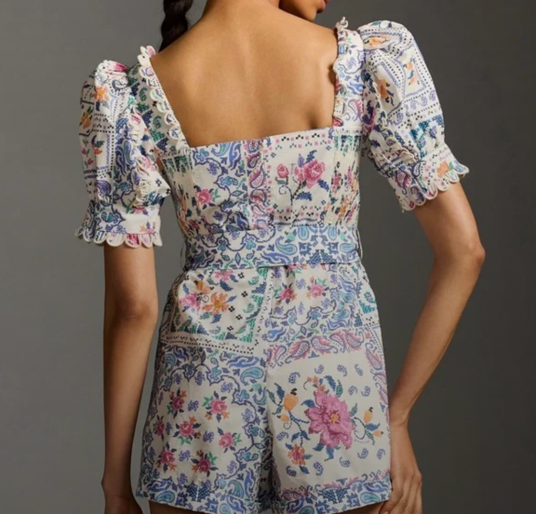 Farm Rio Off White Romantic Bandanas Organic Cotton Romper