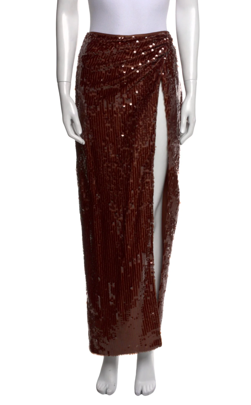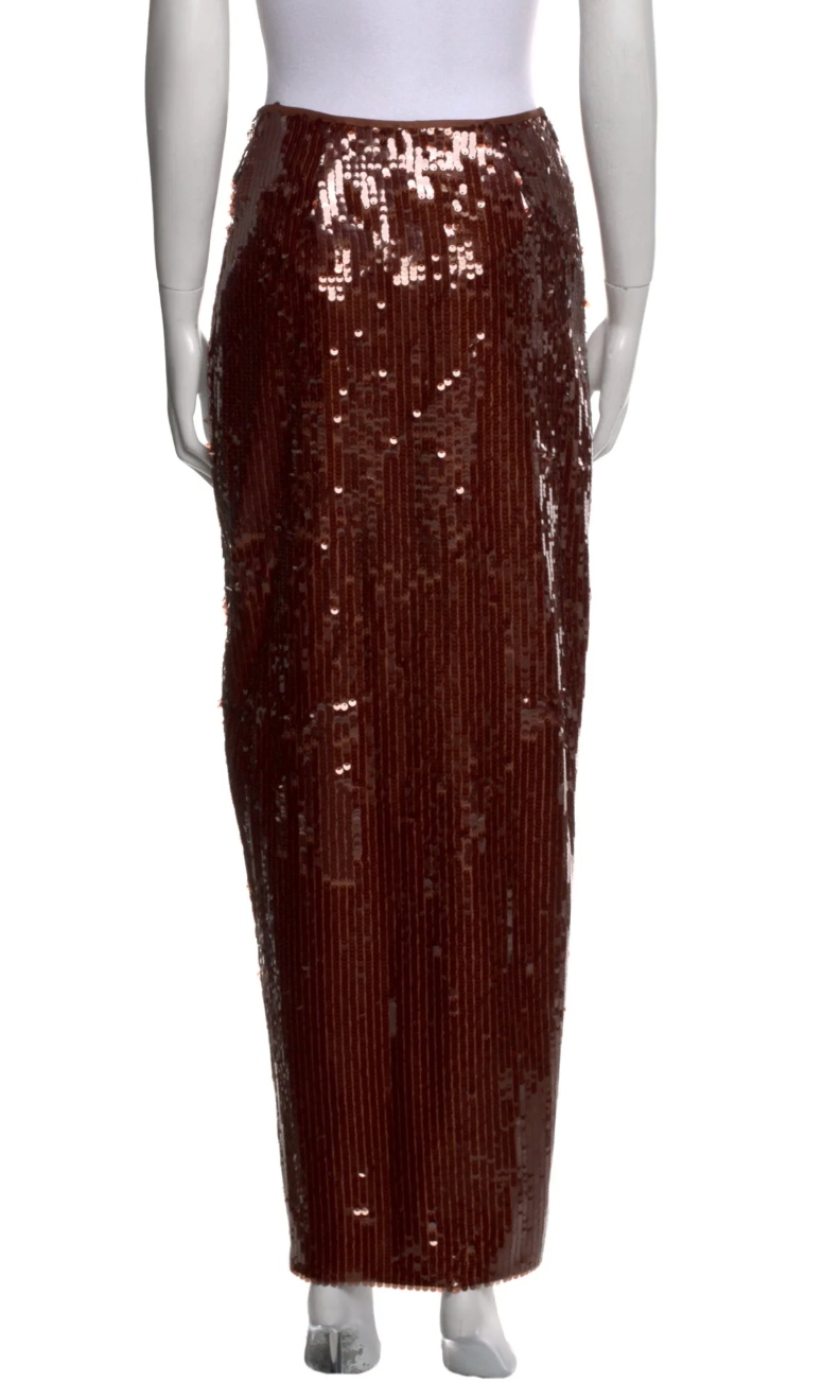 Brown Ronny Kobo Sequin Maxi Skirt, Size XS