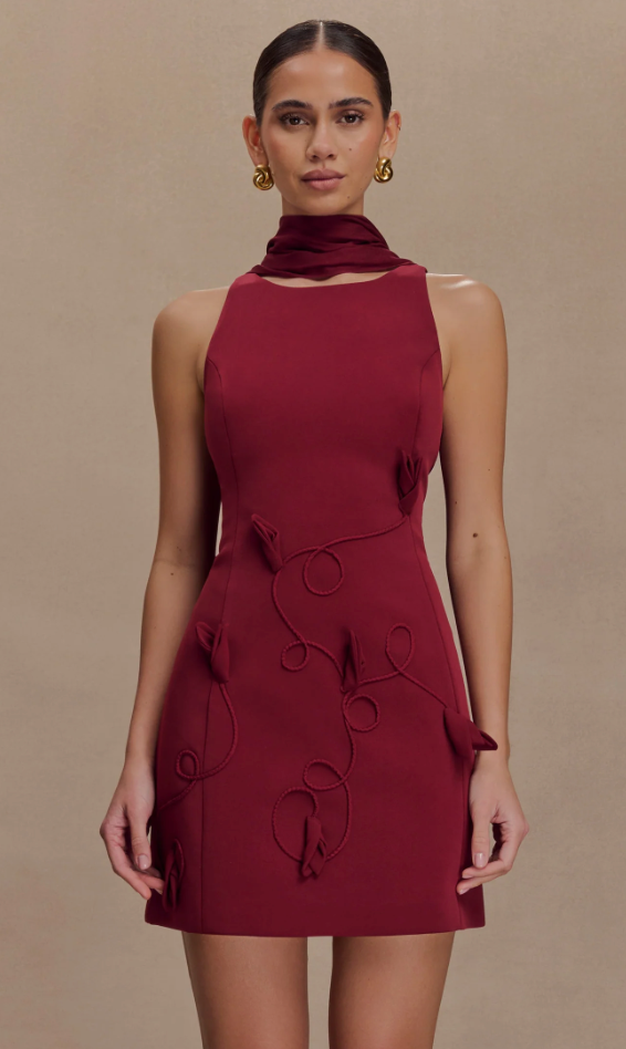 Burgundy Meshki Fitted Dress