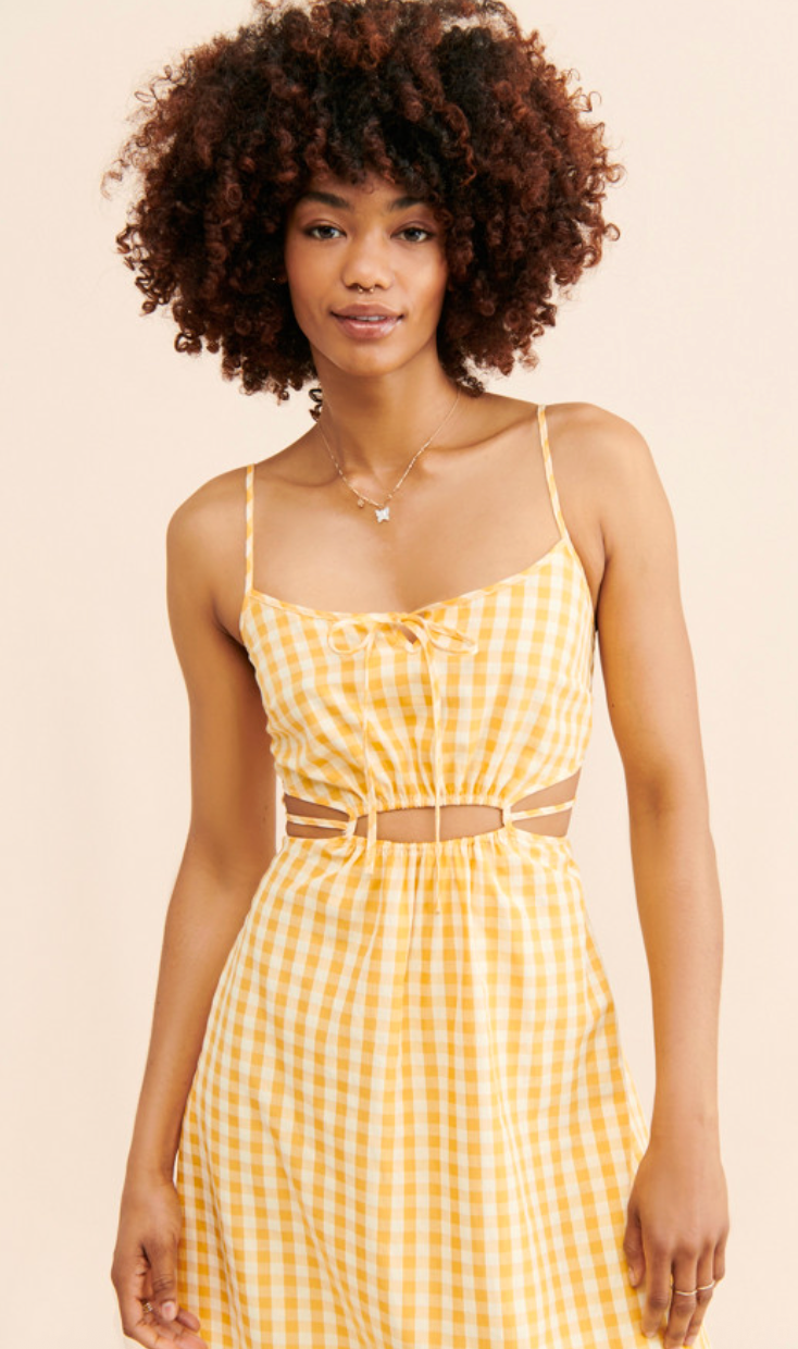 Find Me Now Sacha Midi Dress. Light yellow, Size Small