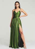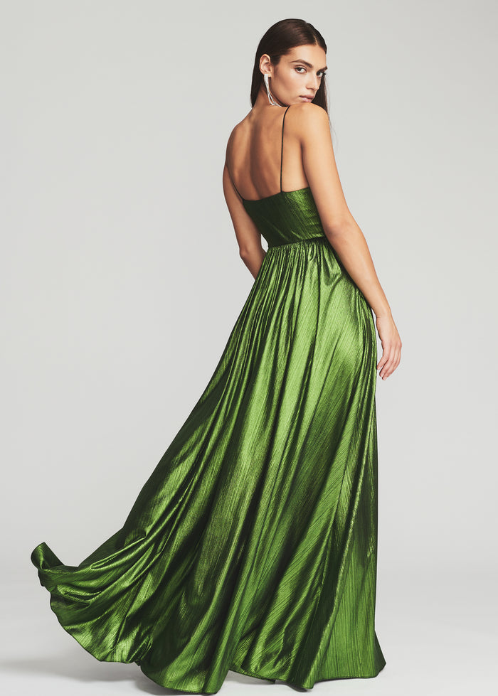 Retrofete Doss Dress Metallic Green Floor Length Size small